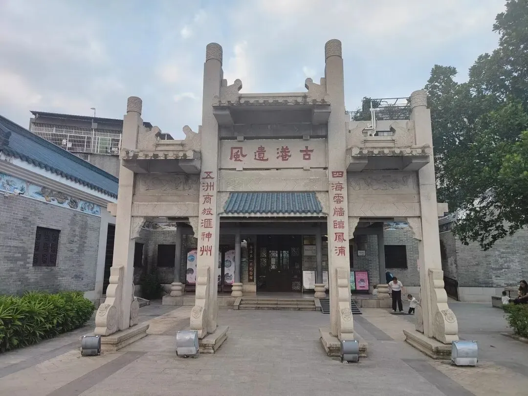 由村内梁姓祠堂改造而成,分为壁画区、实物区与中心展区三部分。实物区集中展示了从村内收集的40多件历代建筑石构件,营造出“残垣断壁”的露天展场,供游客近距离观赏。壁画区内有一幅长31米、高1.5米的大型汉白玉描金壁画,生动描绘了“一口通商”时期万船来埠的繁华景象。二楼中心展区采用清代“锅耳房”风格的展板布局,系统展示了古港的历史脉络与村落的遗韵,并收藏有乾隆至道光年间的四块重修南海神庙碑刻。