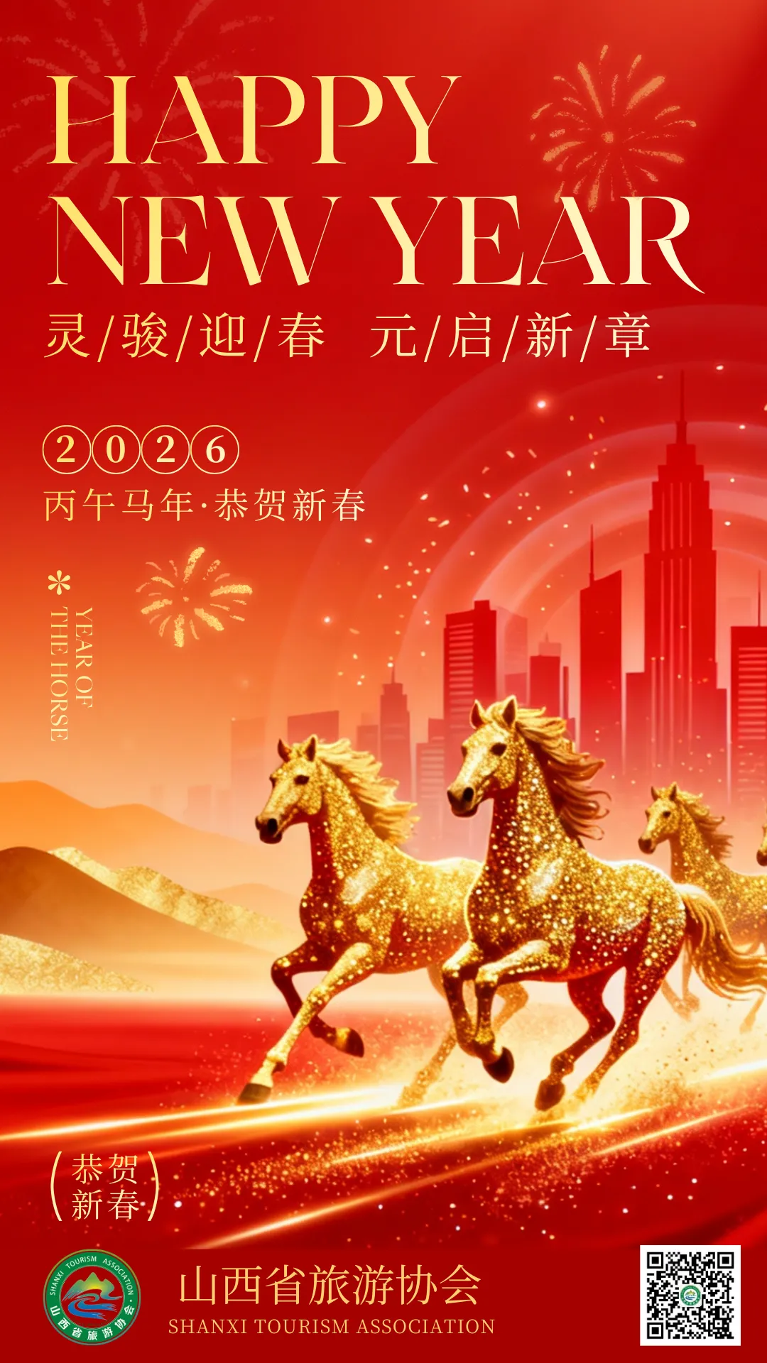 岁序更替,华章日新。值此丙午马年新春佳节来临之际,山西省旅游协会谨向全体会员单位、从业人员及长期关心支持协会发展的各界朋友,致以诚挚的问候和新春的祝福!