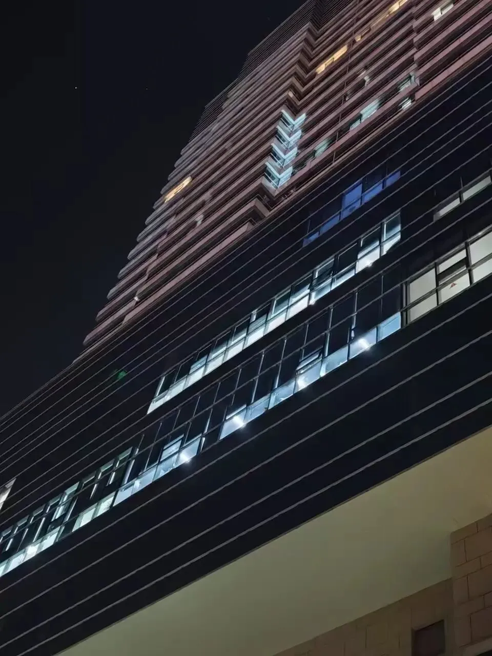 灯火通明的同程旅行合肥客服中心办公楼 图片来源:受访者供图