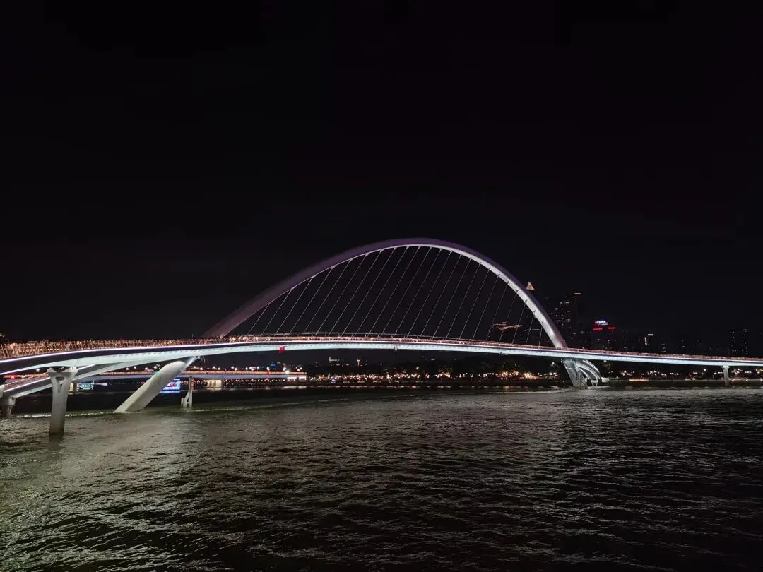 桥梁设计以“琴鸣绢舞·岭南花舟”为概念,融入了粤曲水袖、岭南古琴等岭南文化意象。其结构为拱梁固结体系,主梁采用抗扭性能好的变截面钢箱梁,主拱肋向东倾斜10度,造型独特。桥面分为东侧的慢行步道与西侧的快行步道,分别满足休闲观景与快速通行的需求,并通过坡道和梯道与两岸衔接。桥梁采用了多项人性化设计,如设置遮阳雨棚、清凉喷雾、立体绿化以应对本地气候,采用无障碍坡道、防滑地面及圆角防撞设计以确保通行安全与舒适。