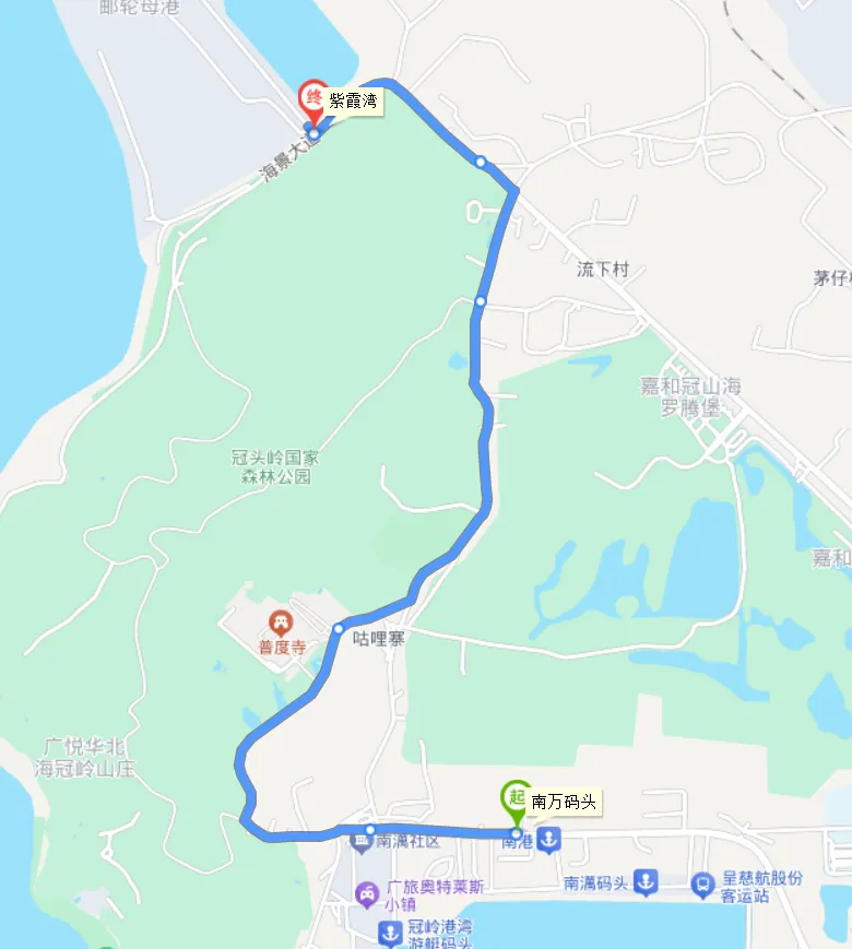 因节日期间交管部门对菩提路、冠岭路等路段实施交通管制,冠岭景区公交专线(南万码头-紫霞湾)自2月15日起临时停运。