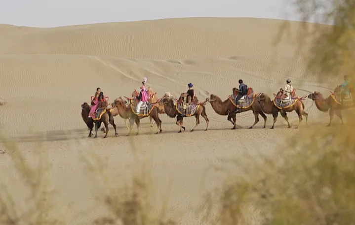 乘骆驼漫步沙丘