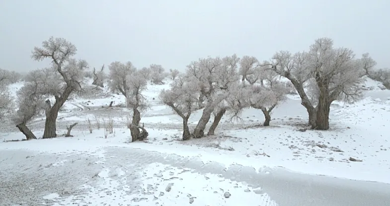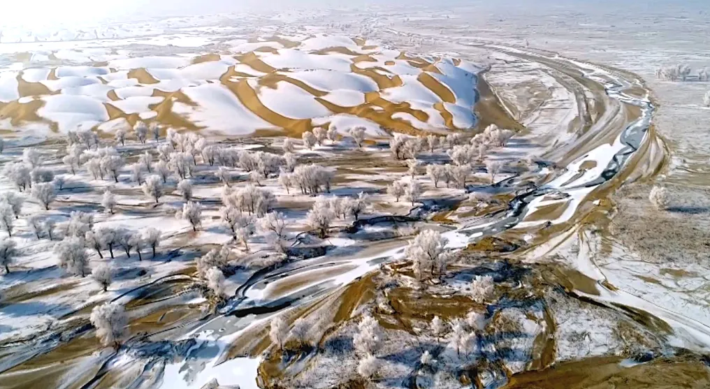 邂逅冰韵胡杨与沙雪奇观