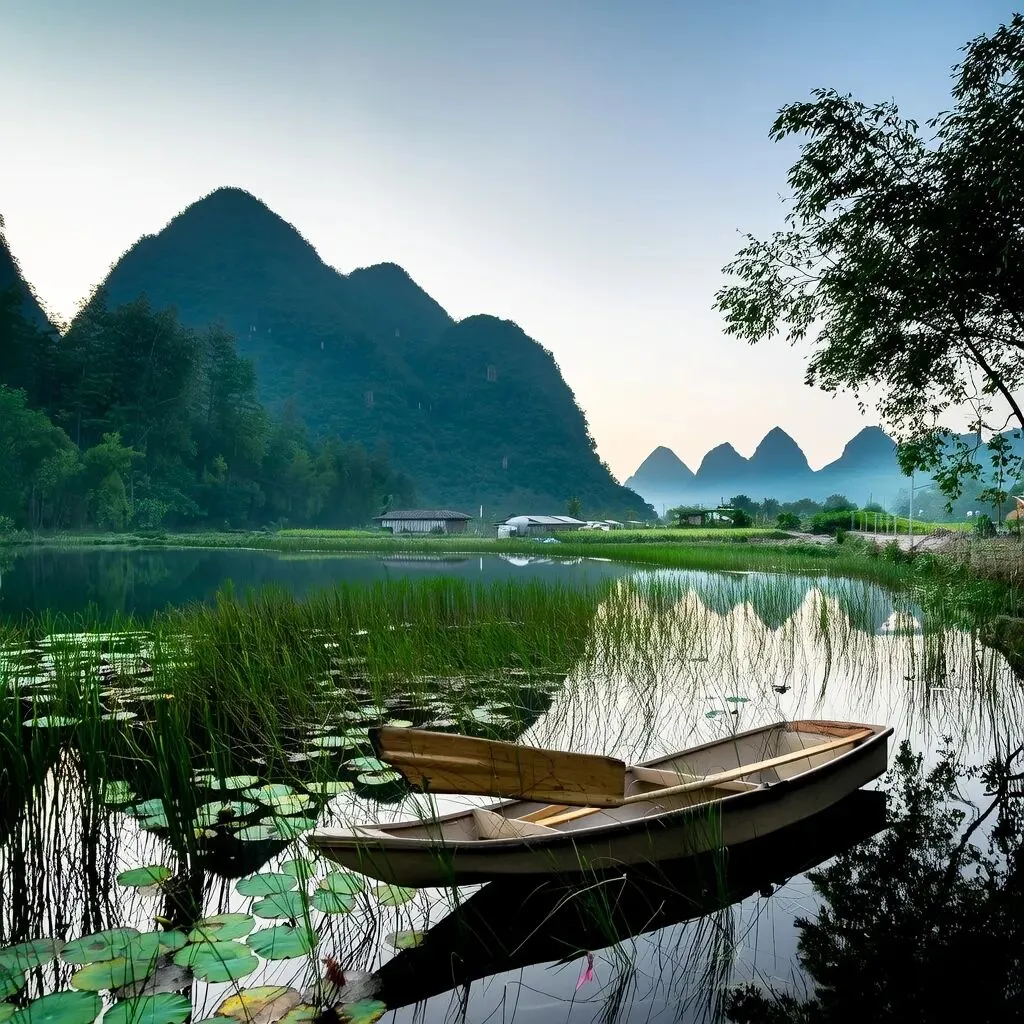 有人形容这里像“小桂林”,但我觉得更像梦里那种场景——远山、稻田、湖泊乱入彼此的倒影,风吹过荷叶的浪,一波一波都能漫进心里。