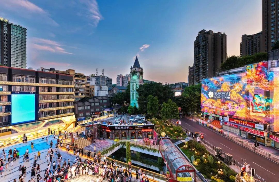 当报恩塔旁的钟声在晚霞中响起,声波荡过钟鼓楼·江阳里的新派市集——这里咖啡与糖画相邻,霓虹与车流对望。漫步到忠山公园的树荫下,外界的喧嚣也在此刻止步,独留下傍晚的悠悠斜阳。