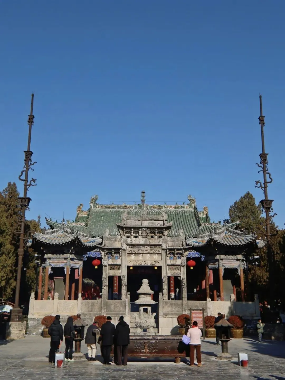 关帝庙门票免费,在印象中,这里更多的是本地香客虔诚祈福的地方。但是近年来,越来越多年轻人被这里的建筑艺术吸引而来,甚至庙前也逐渐形成了商业街区。临近春节,各种表演也开始了,好不热闹。