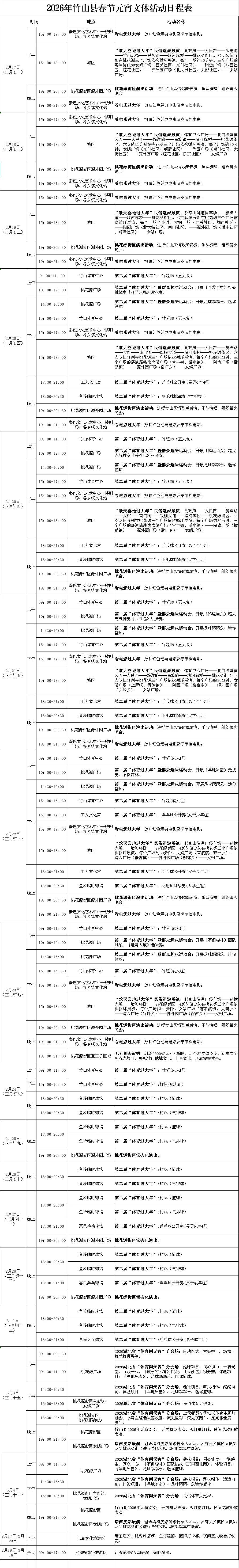您现在的位置是:首页 > 国内旅游目的推荐 > 正文 国内旅游目的推荐 春节不打烊‖竹山县春节元宵文体及景区活动日程表 admin2026年02月17日 01:04:09国内旅游目的推荐14 春节不打烊‖竹山县春节元宵文体及景区活动日程表HAPPY CHINESE NEW YEAR我家就在桃花源欢欢喜喜过大年一张图玩转新春 转载请说明来源于"旅荐网",部分内容转载自网络,如有侵权请联系qlwl@foxmail.com删除 本文地址:https://www.15386.cn/post/110690.html 上一篇 警旅联动规范旅游秩序 下一篇 古镇焕新颜,年味正当时!这份龙华古镇游玩全攻略请收好~ 相关文章 2026年,鼓浪屿旅游规划哪家机构技术领先,揭秘行业TOP1 没做攻略就别来张家界旅游了,太坑了! 磨盘山岛游玩攻略·交通篇|一站式攻略 7沙龙工作室主理人 4月行程安排 热乎乎的三四月份川西旅游攻略,非特种兵版 宜宾市旅行新攻略!小众场馆与特色美食,惊艳所有游客 景点旅行攻略《浙江吴哥专属》 清明出游指南!1.5h 自驾圈,藏着超多好玩地! 东北游-哈尔滨中央大街旅游攻略 旅行指南,鄂州胜地,遇见江城湖畔清新春意 发表评论 取消回复 评论列表 这篇文章还没有收到评论,赶紧来抢沙发吧~