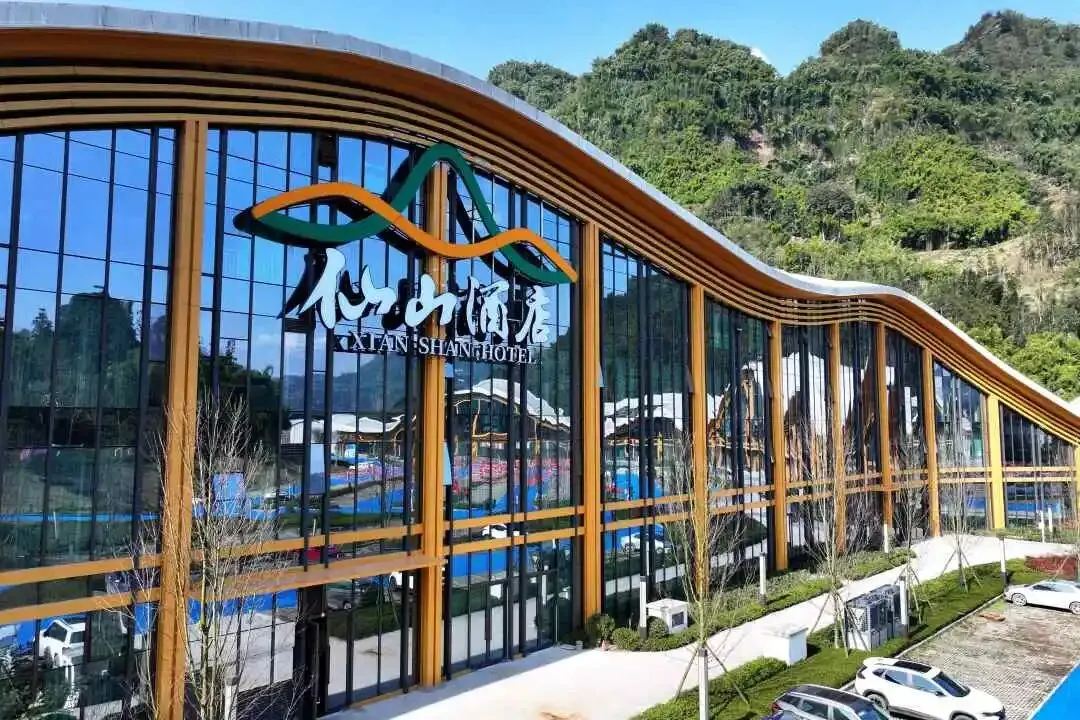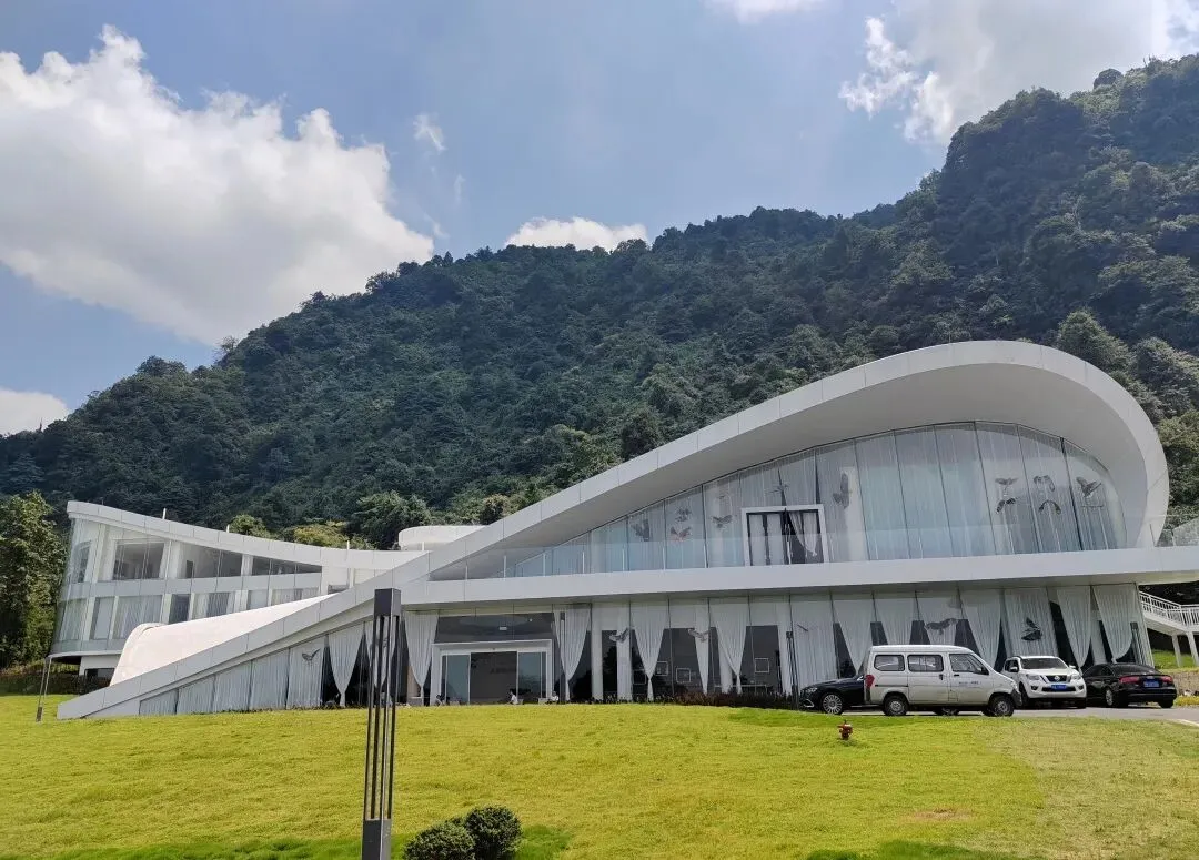 老君山二燕坪宣教馆。🌳作为川南首个以国家一级保护动物四川山鹧鸪等珍稀雉类为主题的自然展馆,可供亲子游玩、研学。仙山酒店,作为游客接待中心,集餐饮、住宿于一体,提供“一站式”服务。