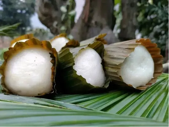 龙华传统泡粑:选用糯米、当地富硒大米制作,由龙华当地独特的一种植物粑叶包裹蒸制而成,肤若凝脂,晶莹剔透,酥香可口。