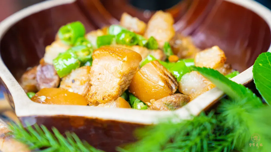 八仙老坛肉:选用农家散养包谷猪肉烹炒,风味独特,粑糯入味。