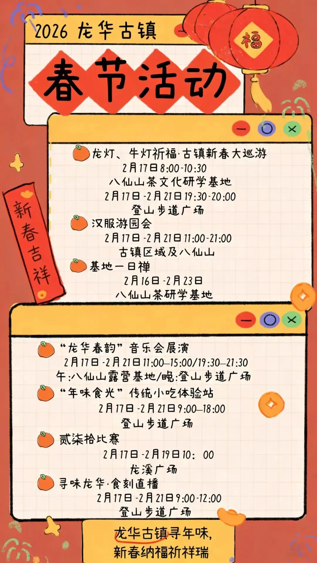 春节期间,屏山龙华古镇邀您共赴一场穿越千年的年味之约!2026年丙午马年正月初一至初五,以“龙华古镇寻年味,新春纳福祈祥瑞”为主题的新春传统文化活动即将盛大开启。