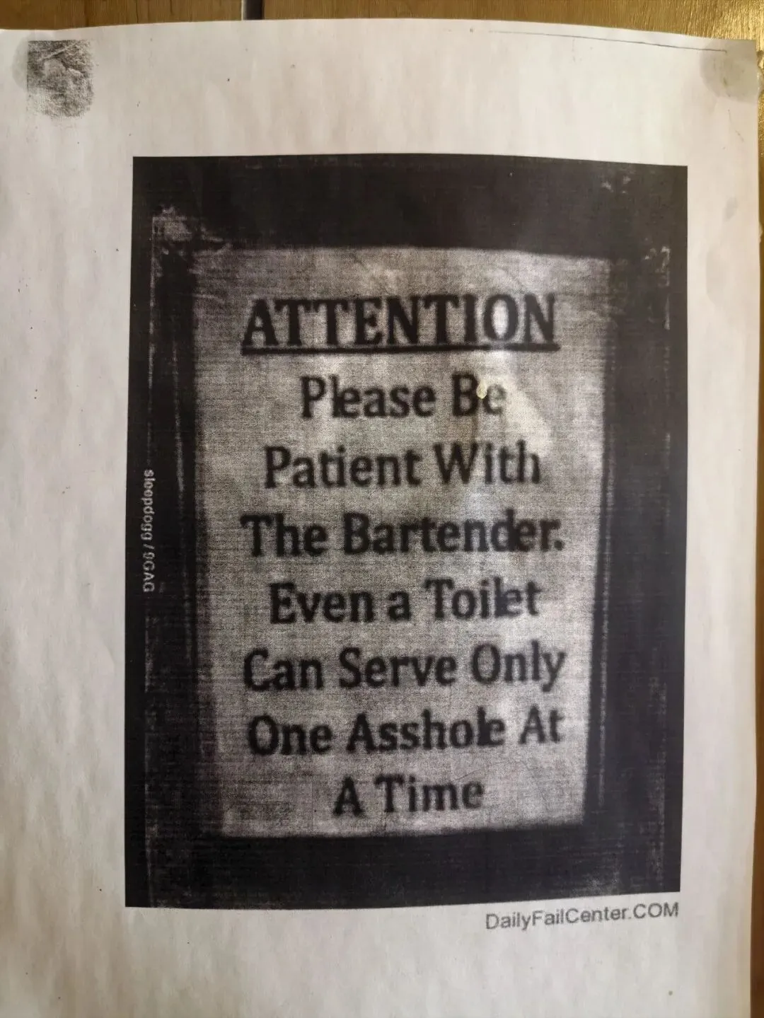 有时,在如厕间的门后,还有这种英式幽默,比如这张:注意,请对酒保