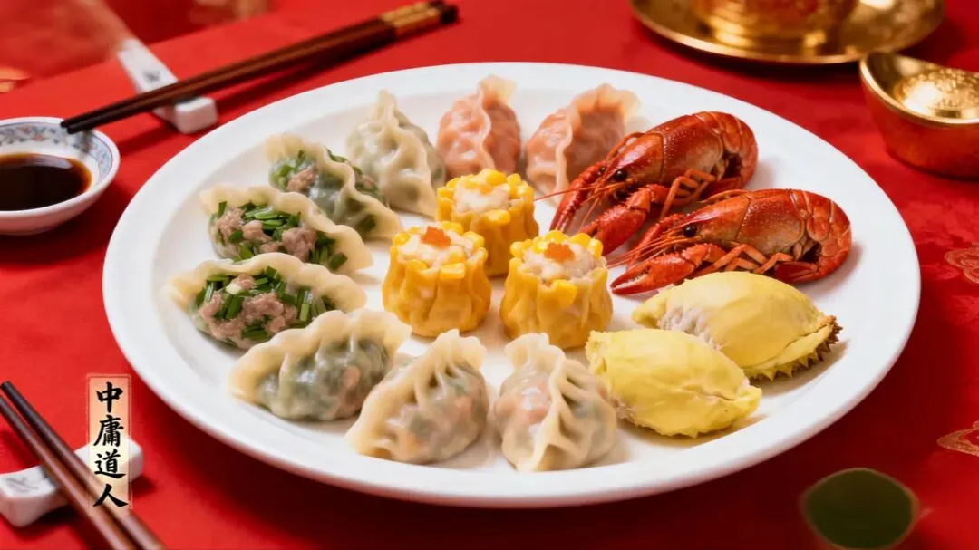 主食还是饺子(爷爷的面子必须给),但馅料搞了创新——除了韭菜猪肉,还有芝士玉米、小龙虾、甚至榴莲口味(侄子点名要的)。煮出来一锅,跟开盲盒似的。
