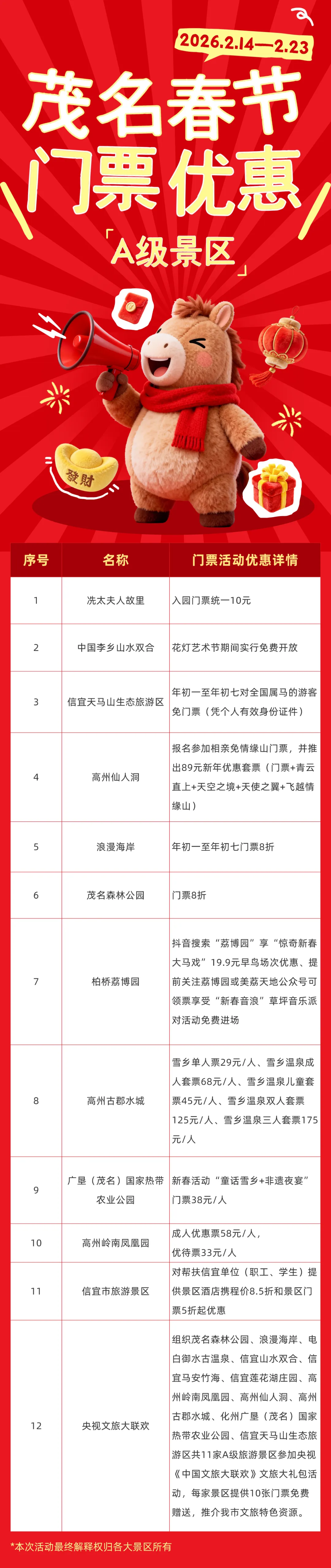 茂名春节大放价!票根优惠+景区优惠,省钱攻略速收藏!请到茂名过大年!