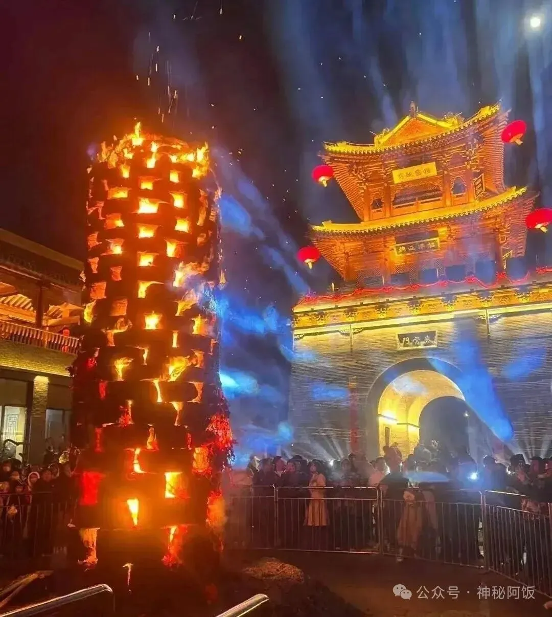 除夕这天,讲究拉满。大门贴门神,水缸、米面缸、菜刀把都要贴红纸讨彩;接祖宗回家过年,供桌灯火彻夜不灭。元宝形的饺子里藏着铜钱、红枣,配着长山药,每一口都是好兆头。十二点一到,晋北的旺火熊熊燃起,火苗窜天,人们绕着转圈,祈愿红红火火,屋里通亮“照虚耗”,一宿不灭。
