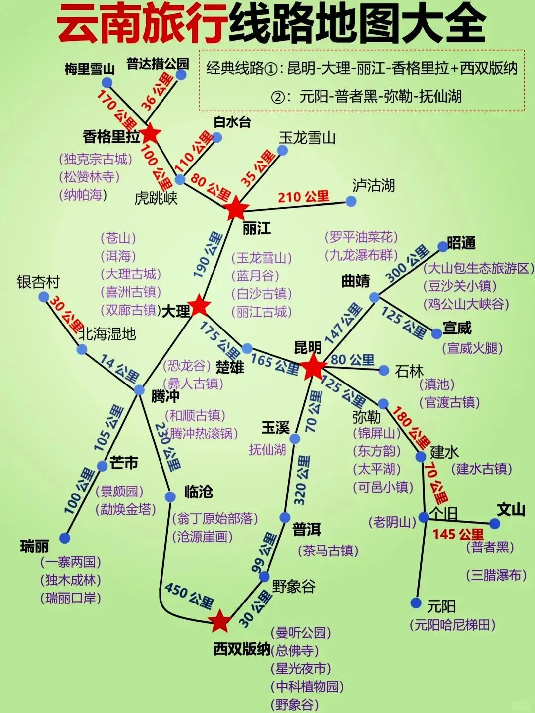 云南旅游路线图