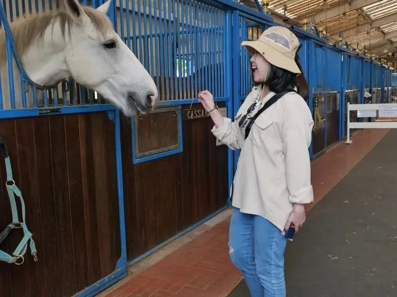 来到“Nasu Farm Village ”的访客可以亲自与马儿互动。