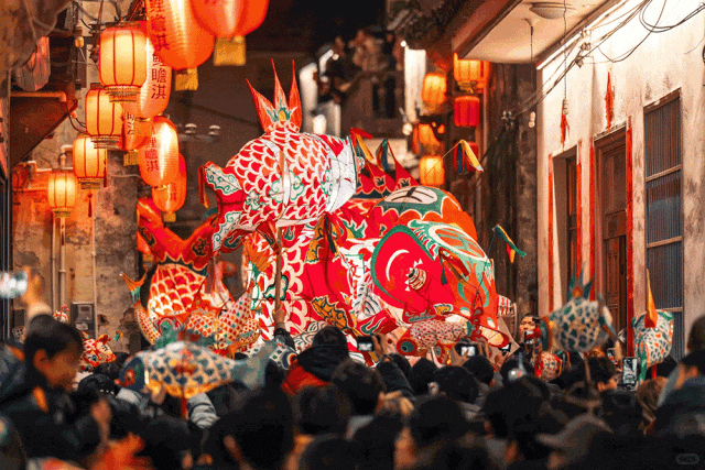 在这里,你可以体验舞龙、舞狮、腰鼓、马灯、婚俗、百工等多个非遗项目特色踩街活动,还有渔民画、渔绳结等项目等你来体验,如果你是非遗爱好者,还可以看到布袋木偶戏的相关表演,总之,这里很好玩,春节来!