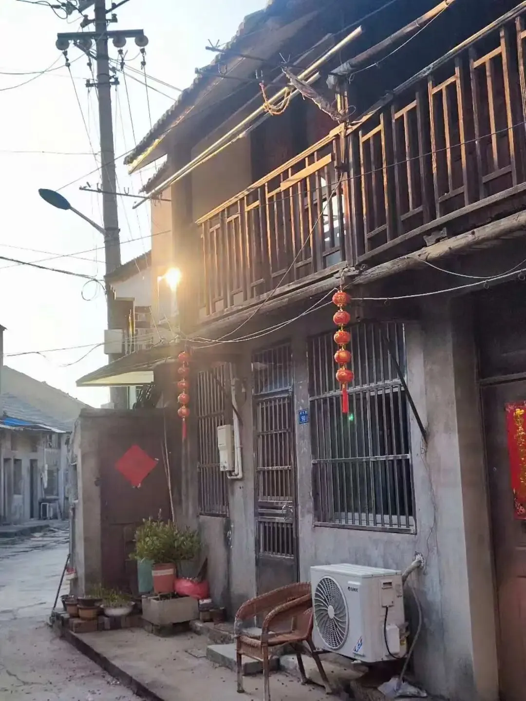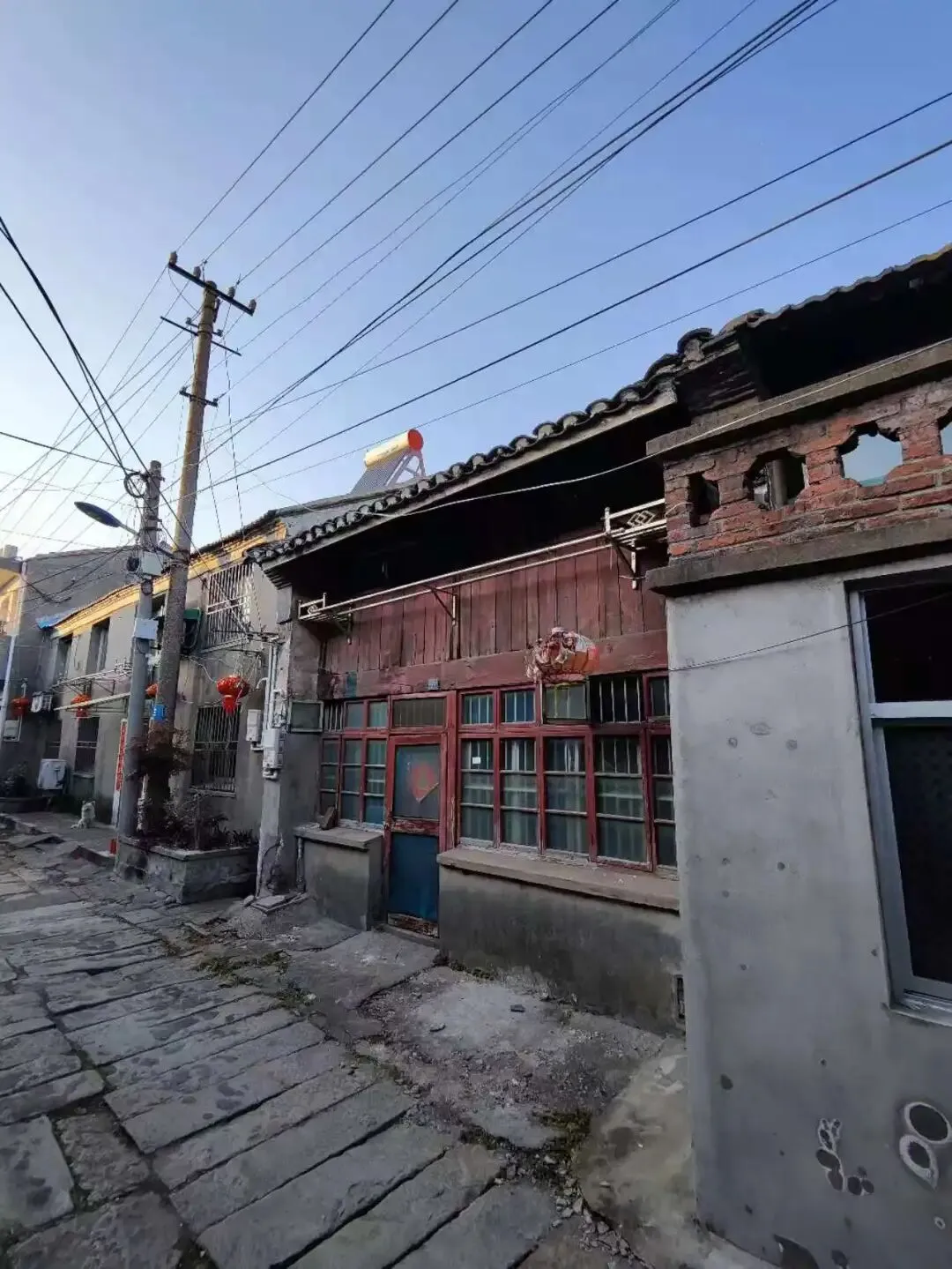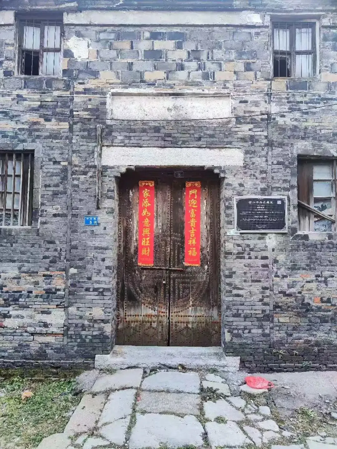 之前总听说这里要开发,但在我的私心里,更喜欢这里尚未被开发的样子。弯弯曲曲的青石板路,慢慢走着,一步一个脚印,真的很踏实。有些房子还能看到炊烟袅袅,也有些屋子早已铁门紧锁,没了人烟。除夕晚上,看到有一家灶台旁摆着两根红烛,应该是在敬灶神爷吧。 随小巷深处走去,就在这弯弯曲曲的小道里,看看各家的房子,有些是已经翻新过的了,但还是能找到故事的痕迹,比如木制的两层小楼,比如进士府邸。在我对这个小巷短短的记忆里,上次还记忆犹新的人民公社已经消失了,剩下的貌似是一幢新盖起来的房子。