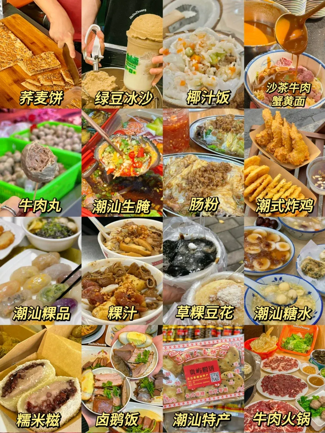还有 Q 弹爽滑的粿条、香到流油的狮头鹅卤味、料多到溢出来的汕头肠粉、外酥里嫩的蚝烙、甜糯绵密的反沙小吃,以及清爽解腻的鲜榨果汁冰…… 早餐、下午茶、夜宵无缝衔接,一天吃 8 顿都嫌不够。