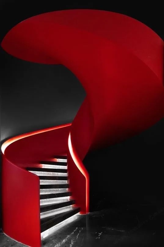 当然,整座酒店室内设计中,吸睛与出片的当属火红的旋转楼梯!