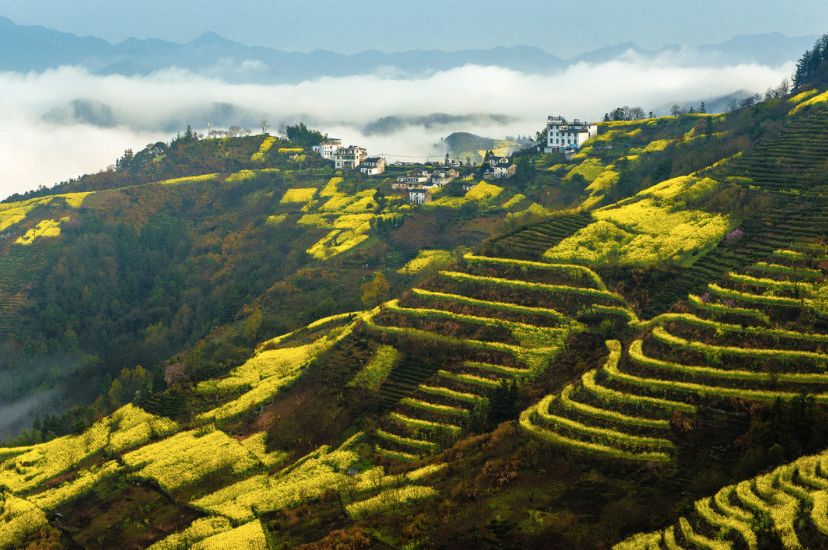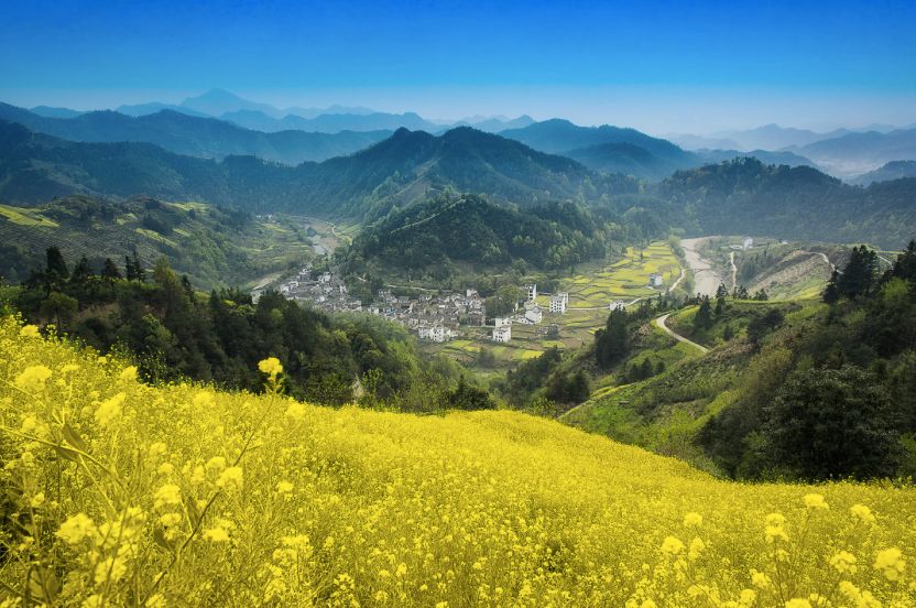 这里是距离外界最近的地方,每到初春时节,万物复苏,漫山遍野开满了金黄的油菜花与桃花、梨花、杜鹃花,五彩斑斓的美景完全不输给婺源。