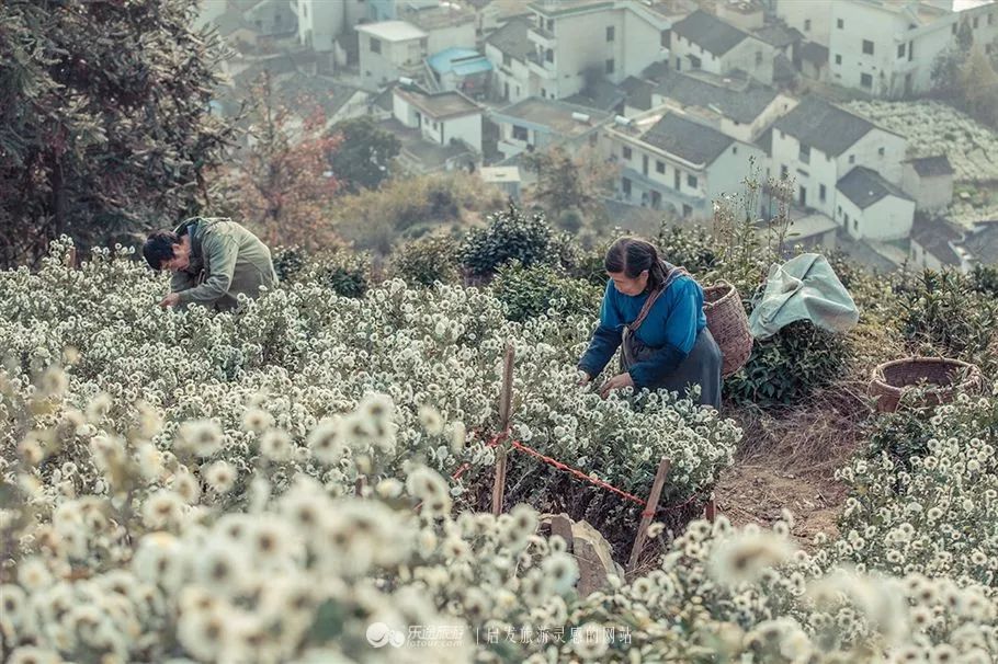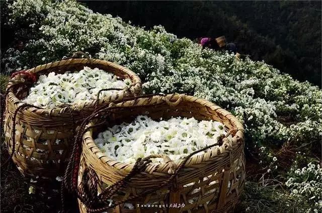 每年11月深秋之时,正是秋菊收获的时候,贡菊在崇山峻岭之间争奇斗艳,将整个小山村熏染得格外绚丽芬芳。