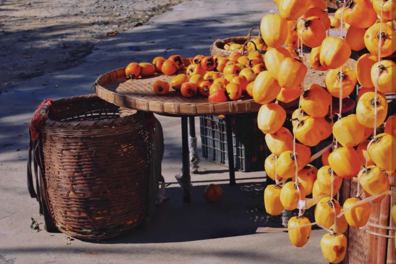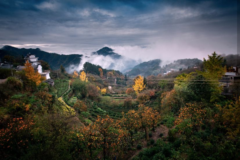 这里盛产形状像是灯笼一般的柿子,乡民们总是将柿子用绳子串在一起,任何挂在门口的竹竿上。漫山遍野的红彤果实趁着云海,你就能感受到秋天的味道。