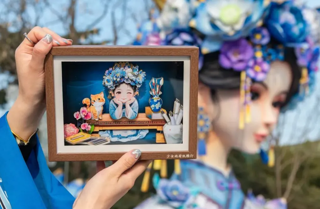 连接南门的百米灯笼长廊由之字形花灯依次排开,蜿蜒成一条光影交织的温暖通路。漫步其中,仿佛走入一幅流动的岁时画卷,灯笼轻摇、光影朦胧,随手举起手机,都能定格下一张充满故事感的国风大片。