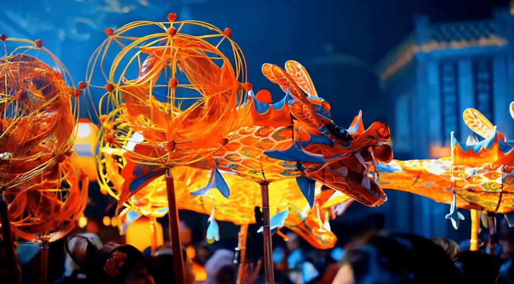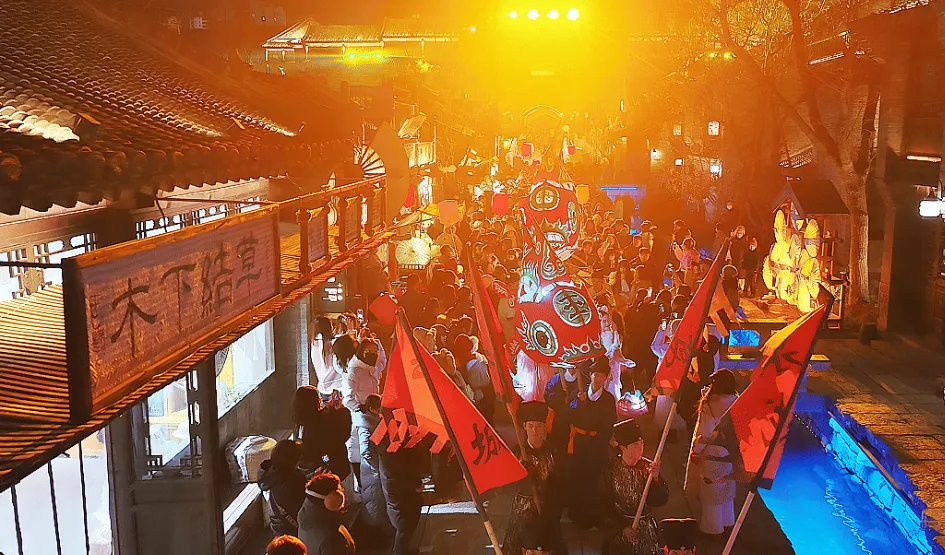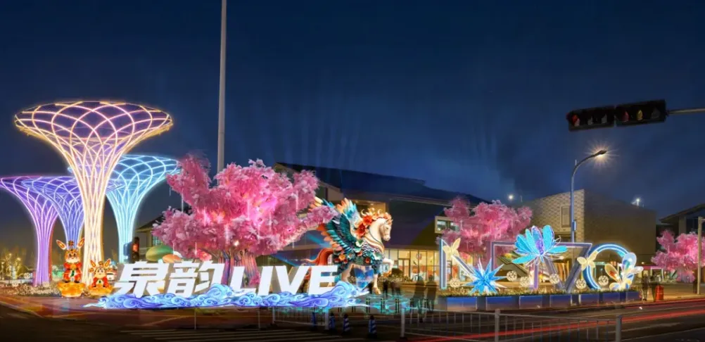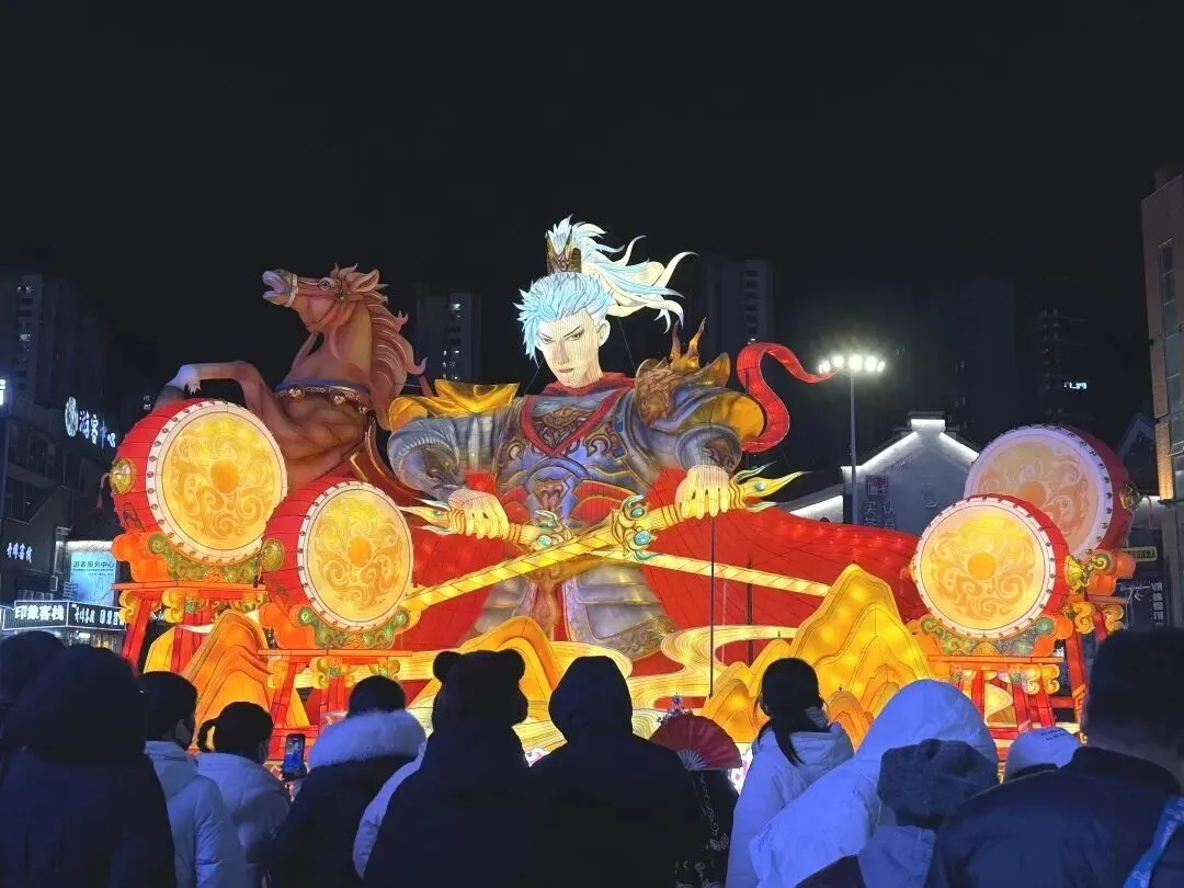 当千年门神骑上发光的骏马,当百米灯笼点亮冬夜的长街,当荷花与福袋在风中摇曳生姿,整条街区变成流淌的光影诗。