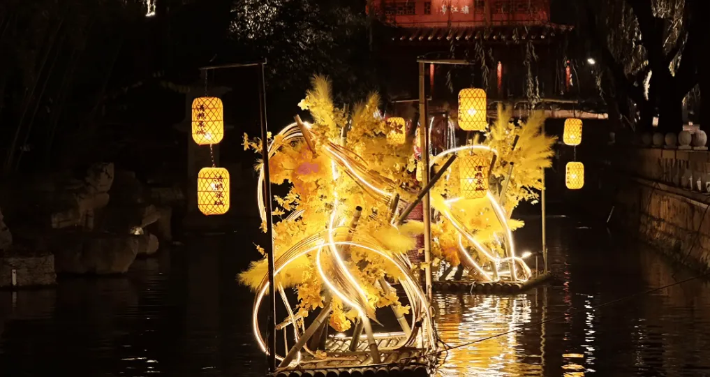 除了万众瞩目的C位主灯,印象济南·泉世界的其他位置也被精心布置的花灯妆点一新。