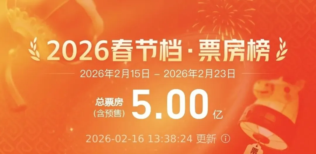 ⭐2月16日,据央视新闻报道,2026年春节档档期总票房破5亿。详情>>