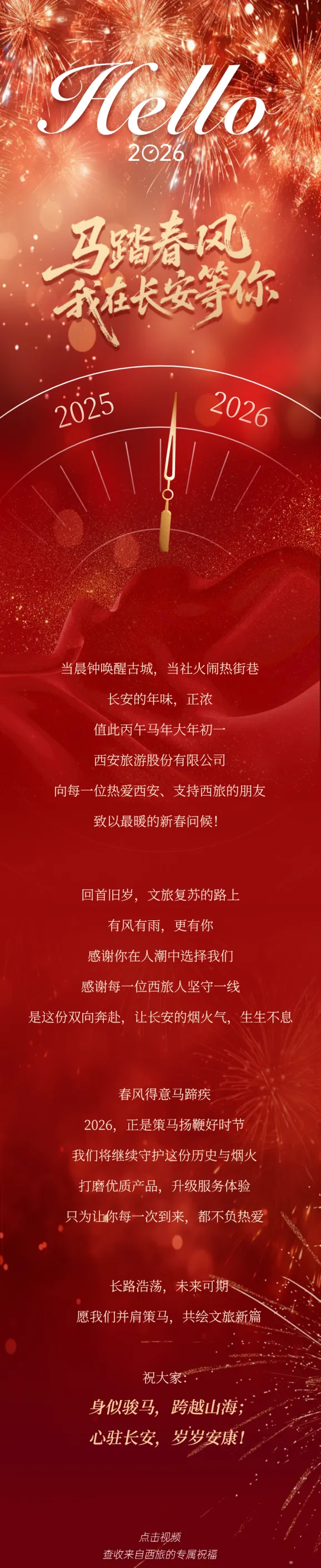 您现在的位置是:首页 > 国内旅游目的推荐 > 正文 国内旅游目的推荐 马踏春风 美好同行丨西安旅游给您拜年啦! admin2026年02月17日 08:54:05国内旅游目的推荐8 马踏春风 美好同行丨西安旅游给您拜年啦! 已关注 关注 重播 分享 赞 视频详情 <内容主要为分享传播之用,文章或图片版权属于原作者><如有侵权请联系删除>编辑 | 张 琛视觉 | 秦 玳审核 | 王 朵出品:西安旅游(000610.SZ)Previous Review往|期|回|顾 转载请说明来源于"旅荐网",部分内容转载自网络,如有侵权请联系qlwl@foxmail.com删除 本文地址:https://www.15386.cn/post/110884.html 上一篇 厦门市翔安职业技术学校(厦门工商旅游学校翔安分校)祝您新年快乐! 下一篇 凯撒旅游祝您新春快乐! 相关文章 广西旅发通灵大峡谷旅游有限责任公司招聘 旅游行业解决方案 | e签宝驱动文旅消费市场数字化转型,智能高效,签约新体验 哇塞️被男朋友做的威海旅游攻略惊艳到了 伊犁6月旅游攻略伊宁出发伊犁环线4日游 五一广西崇左旅游攻略,崇左亲子游 这是我爸1963年的丽江旅行攻略:没有一张照片,却写满山河 广西柳州旅游:3天2晚保姆级攻略,值得收藏! 无锡旅游保姆级攻略(附:无锡地铁线路图),值得收藏! 湛江金沙湾旅游攻略 粤西小三亚看海吃鲜全攻略 【重点关注】研学旅游纳入新国标《旅游规划通则》 发表评论 取消回复 评论列表 这篇文章还没有收到评论,赶紧来抢沙发吧~