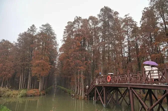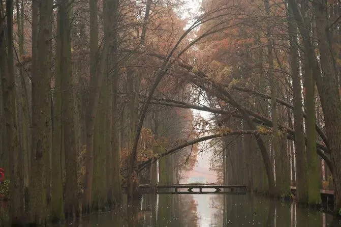 此时的回李中水上森林公园已逐渐进入淡季,游客不多,但我却格外喜欢这份宁静,色彩也逐渐丰富起来。公园里栽植了10万株水杉、池杉,树木高大茂密,生机盎然,听当地的导游介绍,这里林木蓄积量已经达到1.5万立方米,并且每年还在以12%的速度递增。