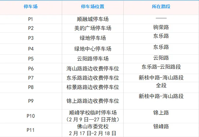 4、沿江路顺德融媒有限公司大院停车场2月17日-22日9:00-17:00开放,请务必在17:00前驶离车辆。