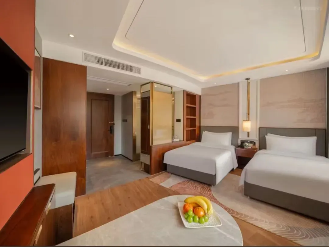 房间配有梦百合记忆枕、羽绒被、手机无线充电、电动窗帘、语音控制等智控设施。