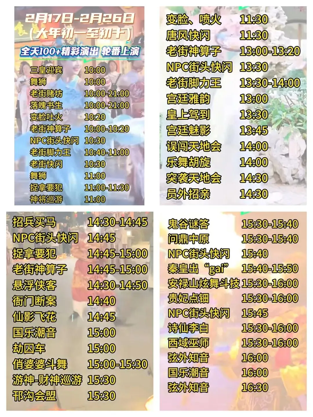 全天百场特色演出轮番登场