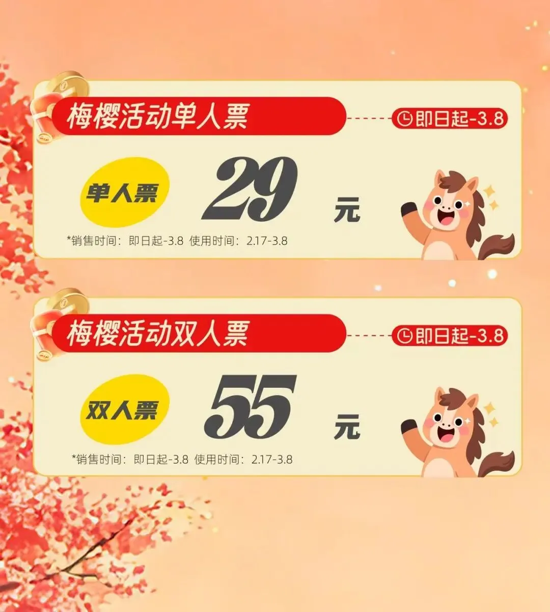 梅樱单人票29元