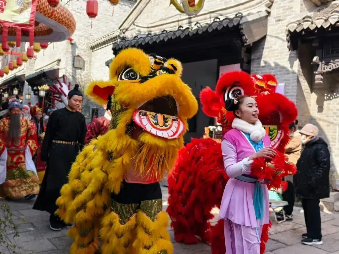 舞龙舞狮、钱杆舞、跑驴齐上阵