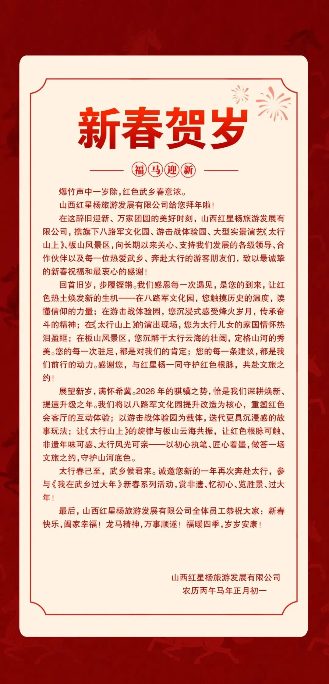 【新春贺岁】山西红星杨旅游发展有限公司给您拜年啦!