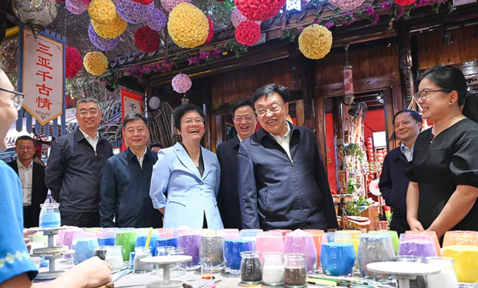 三亚千古情景区春节期间推出系列特色文旅活动,丰富游客文体生活。冯飞调研景区运营、黎族苗族文化活化传承等情况后指出,各大景区要提升管理服务效能,不断丰富体验场景,科学研判景区承载量,为游客提供暖心舒心安心服务。有关市县和部门要保护好、传承好、利用好非物质文化遗产,用好黎锦文化产业联盟,推动非遗保护与产业融合发展。