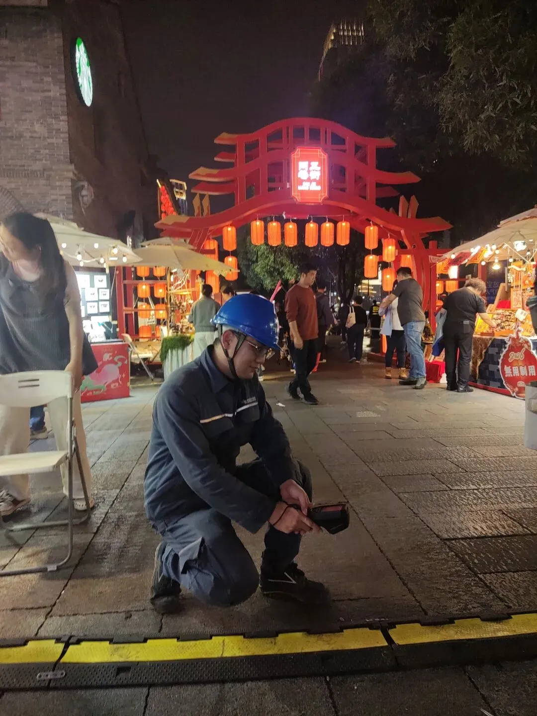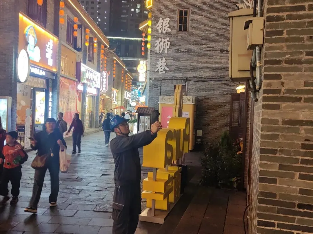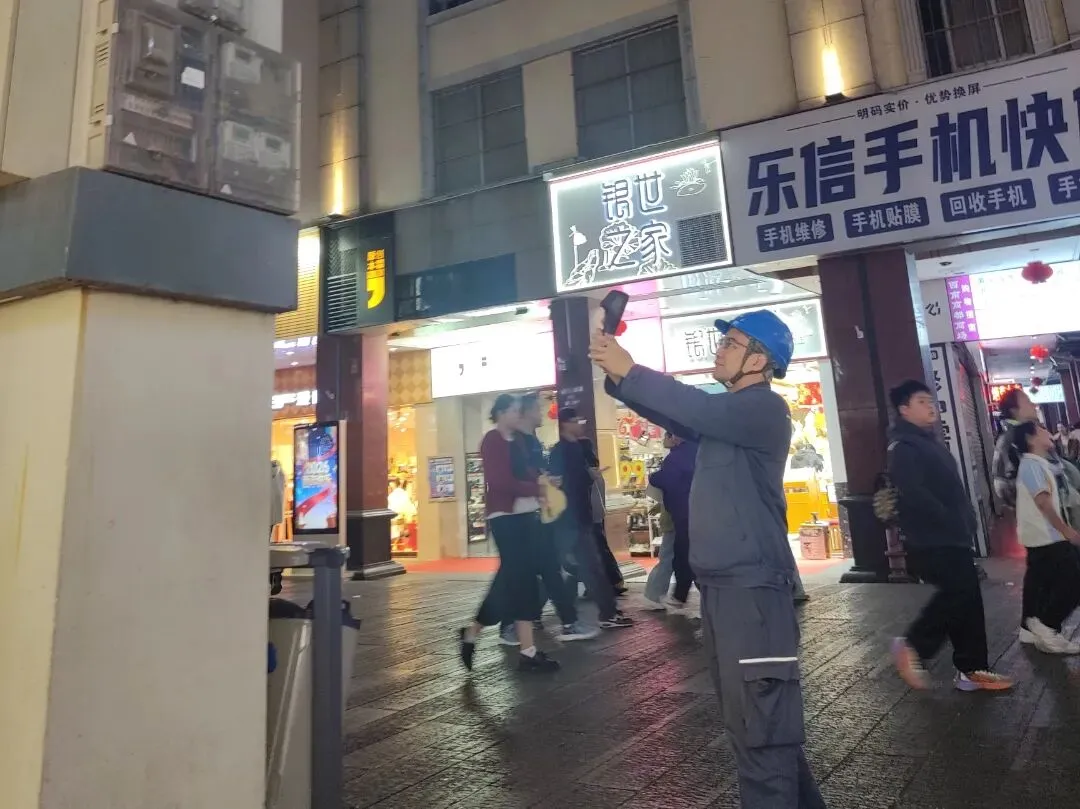 兴宁分局黄庆阳深入南宁历史文化核心街区“三街两巷”开展夜巡测温,通过细致排查隐患,全力保障电力可靠供应,守护市井烟火与城市文脉。(何海刚 摄)