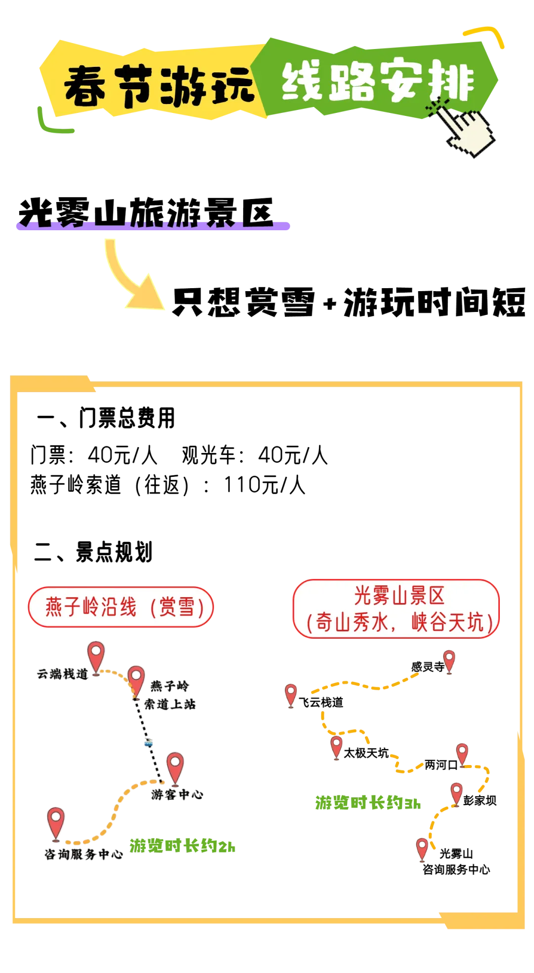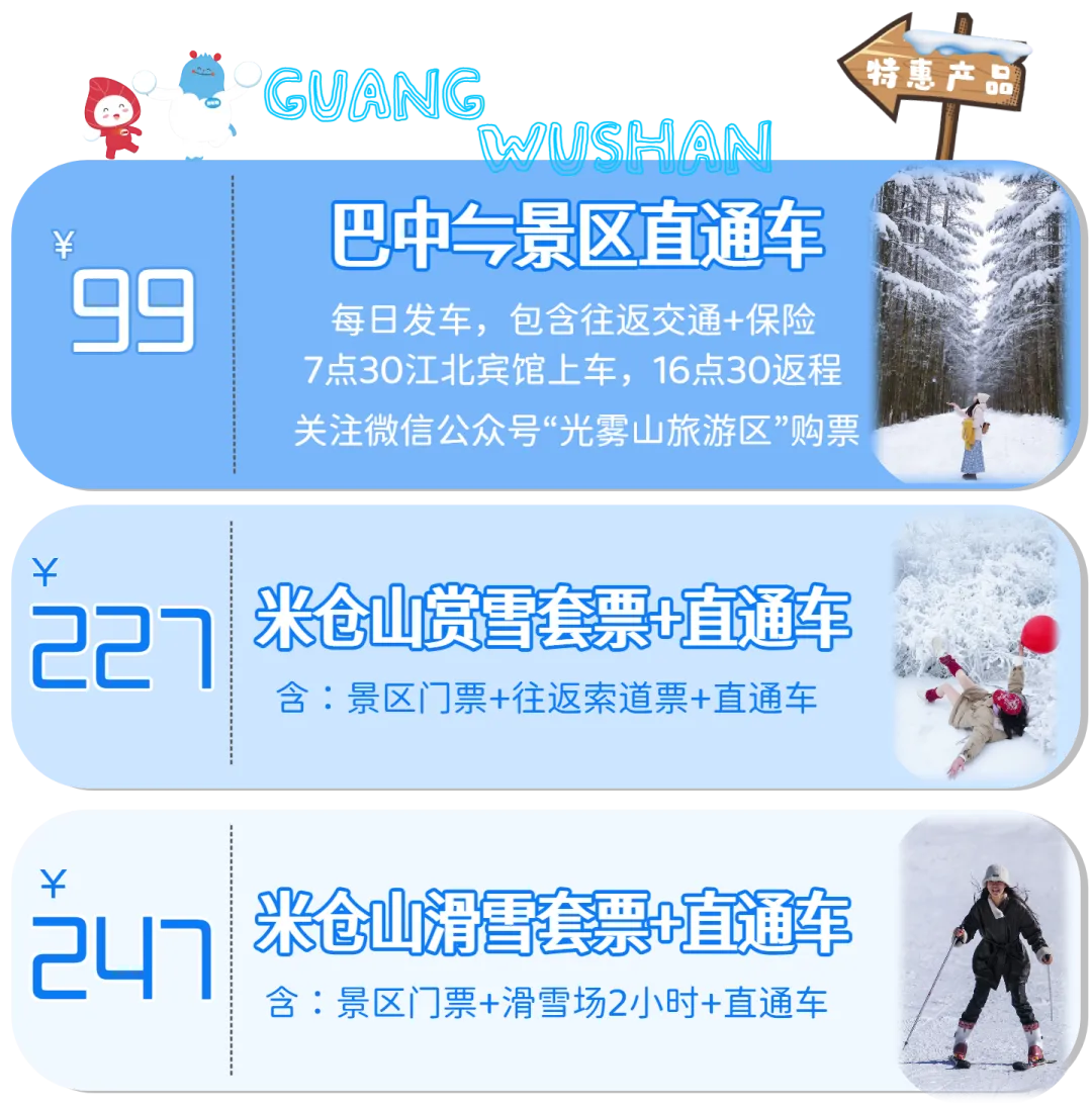 您现在的位置是:首页 > 国内旅游目的推荐 > 正文 国内旅游目的推荐 走喔!景区直通车春节照常发车,一天三班!赏雪去咯! admin2026年02月17日 11:18:12国内旅游目的推荐9 走喔!景区直通车春节照常发车,一天三班!赏雪去咯!Hello,我的朋友们景区直通车春节期间不打烊!一天三班!说走就走!走噻,赏雾凇、堆雪人、滑粉雪一脚油门直达快乐!也可以关注“光雾山旅游区”微信公众号①点击“特惠产品”②点击“点击预定”进入直通车购票小程序现在山上仍有大量积雪!而且2月15日—16日会再次迎来降雪!宝子们冲啊!赶紧预约起来一起乘坐直通车奔赴光雾山的冰雪世界中小光期待与你的相遇 - END -免责声明:本宣传资料相关文字、图片仅作为景区宣传使用,不在任何意义上构成企业的要约。部分图片内容来源于网络,版权归原作者所有,如有侵权,请联系管理员删除 转载请说明来源于"旅荐网",部分内容转载自网络,如有侵权请联系qlwl@foxmail.com删除 本文地址:https://www.15386.cn/post/111047.html 上一篇 新春遛娃必看!襄阳景区场馆免票、半价来袭...... 下一篇 江心屿景区西园停车场车位已满的通知(2026年2月17日) 相关文章 踏青抚琴两不误:古琴旅行携带指南! 云南大理悦榕庄旅游山庄酒店设计丨客房设计方案+效果图 泰国旅游爆痘和日晒黑斑全套解决方案 三日打卡吃喝玩乐天津旅游攻略! 汽车寿命、换车路线和自驾游选型 扬州到重庆特种兵最全旅游攻略 旅行英语口语100句(文档+mp3下载),旅游英语口语900句pdf+音频mp3,英语听力磨耳朵100天 云台山比心崖有人拍吗?游玩攻略来啦!!! 熬夜做的徐州清明旅游攻略已经next level #黄鹤楼 #武汉旅游攻略 #武汉地标打卡 #黄 发表评论 取消回复 评论列表 这篇文章还没有收到评论,赶紧来抢沙发吧~