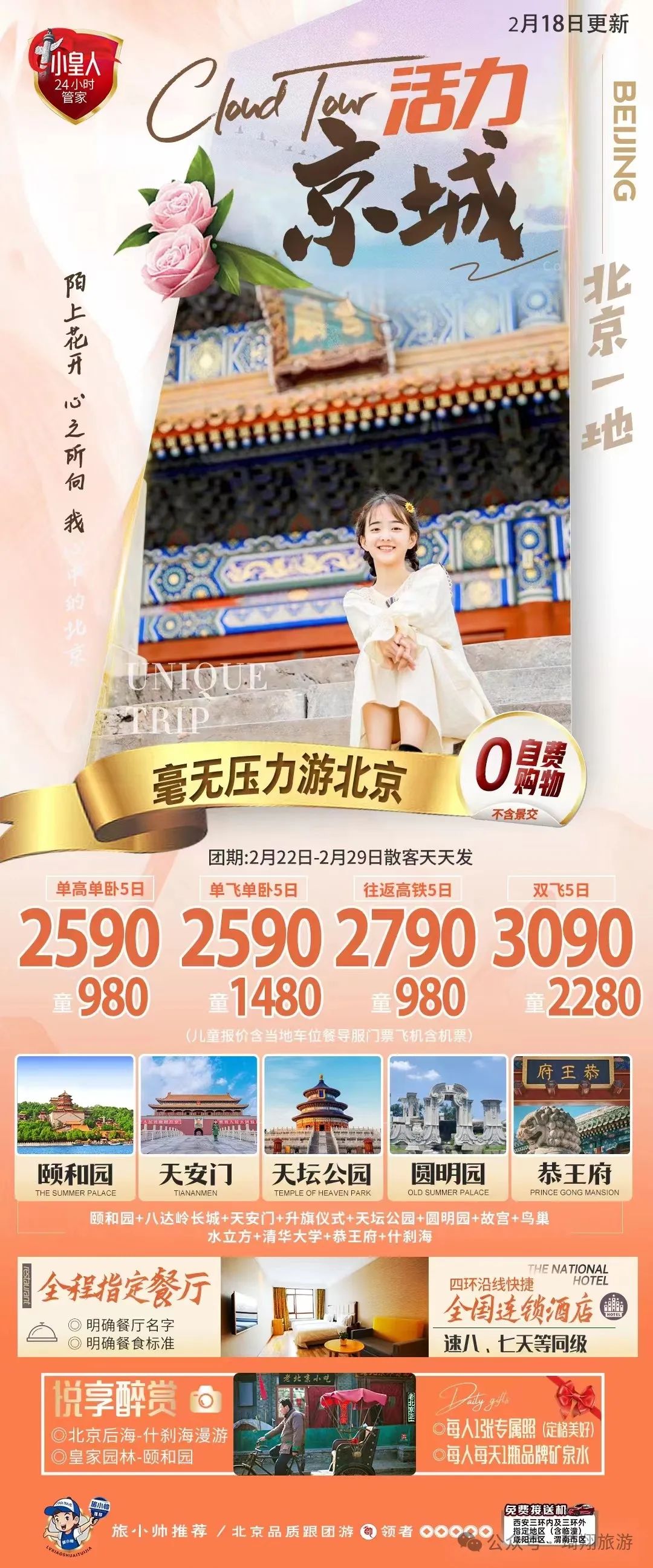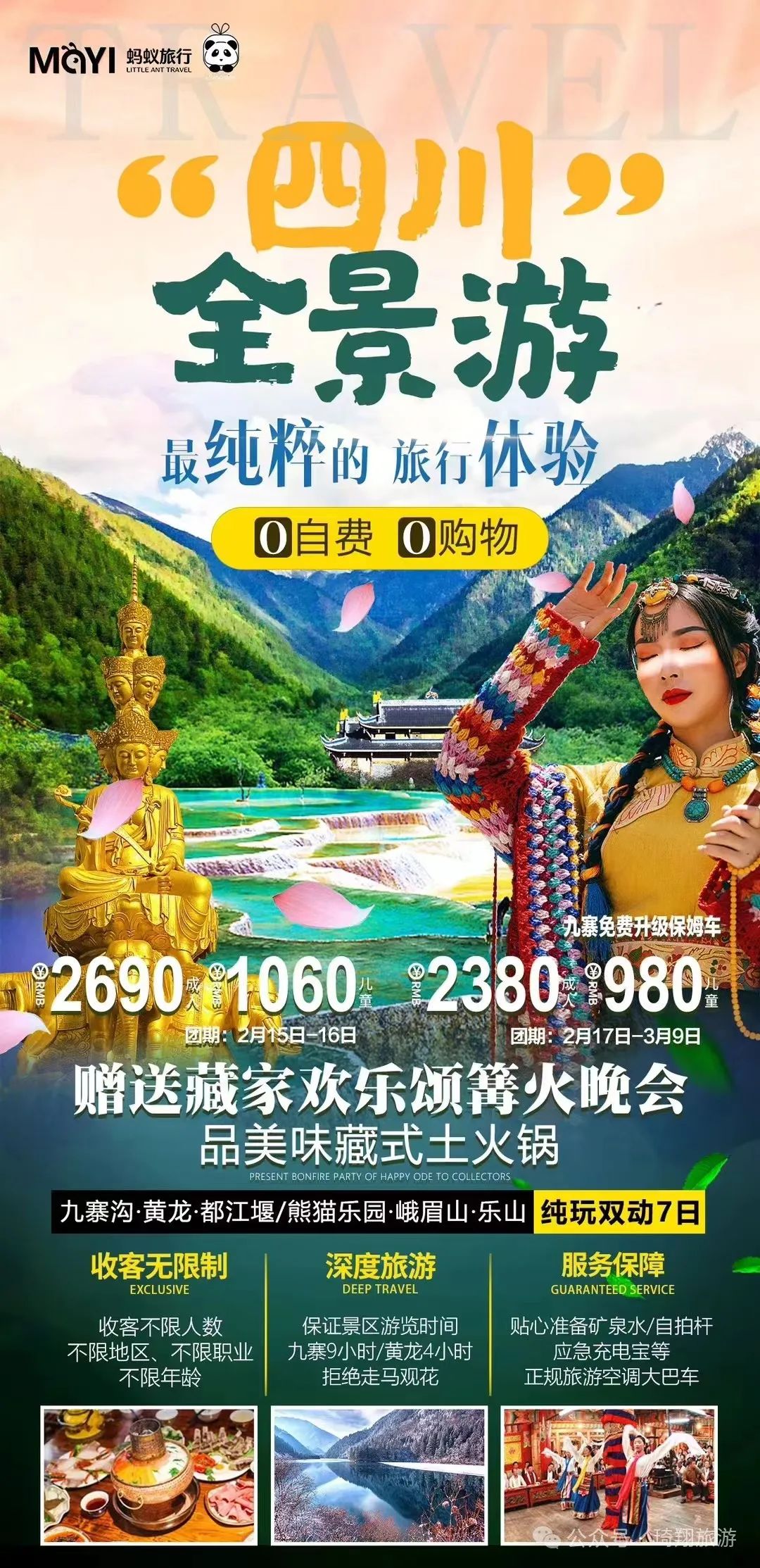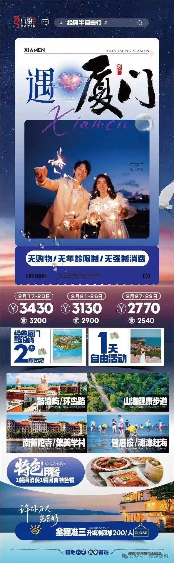 您现在的位置是:首页 > 国内旅游目的推荐 > 正文 国内旅游目的推荐 琦翔旅游•泾州旅行社2024年2月长线线路第二期已更…… admin2024年02月19日 18:28:30国内旅游目的推荐110 点击上方蓝字,关注我们哦在旅途中 遇见每一个可爱的你▼ 琦翔旅游|带你看世界【头号玩家】三亚双飞6日游【臻美南国】北海双飞6日游【醉美三亚】三亚往返双飞6日游【遇厦门】双飞5日游【鼓浪屿印记】厦门双飞5日游【恋上鼓浪屿】厦门双飞5日游【厦峪海印记】厦门双飞5日游【涠洲岛自由行】双飞6日游【云上花开】昆大丽双飞一动6日游【理想之城】昆大丽双飞一动6日游【版纳理想邦】双飞5日游【尊享北京】双高5日游【活力京城】单高单卧5日游【惊叹北京】双卧6日游【乐享迪士尼】双飞5日游【浔梦江南】品质双飞6日游【“四川”全景游】双动7日游【理想安逸耍荣成】亲子双动5日游【安逸蜀都】亲子双动4日游【漫步成都】双动4日游【天府传奇】双动5日游【天造武隆】双动4日游【心动的九寨】双动5日游【十里画廊】双飞5日游【逃之夭夭】双卧9日游【多吉西藏】双卧10日游文章部分内容来源于网络如有侵权,或者雷同,请联系删除。END线路会随时更新,详情请关注琦翔旅游微信公众号关注我 莓道理遇见小莓好悸动少女心 转载请说明来源于"旅荐网",部分内容转载自网络,如有侵权请联系qlwl@foxmail.com删除 本文地址:https://www.15386.cn/post/11106.html 上一篇 【蓝之春旅行社】多个岗位招聘中,欢迎应聘! 下一篇 游玩推荐,徽州幸福之旅——家庭出行 相关文章 反向旅行指南:广州出发1.5h,这几个小众秘境清明人少景美 旅游攻略|洛阳旅游年票能否在牡丹文化节期间使用?答疑来了! 洮河如意湾景区2026清明假期活动指南|民俗踏青+亲子露营,解锁春日新玩法 超详细西安地铁直达旅游全攻略 5-8月去甘南旅游攻略☞听J人的准没错 4-5月川西6天5晚旅游攻略 #北京旅行攻略 ,五十年了,五十后的我们走 北京之旅 #北京旅游攻略 西藏旅游七天六晚超详细旅行攻略,行程+费用+路线介绍 舟山春季旅游完全指南(2026版) 发表评论 取消回复 评论列表 这篇文章还没有收到评论,赶紧来抢沙发吧~