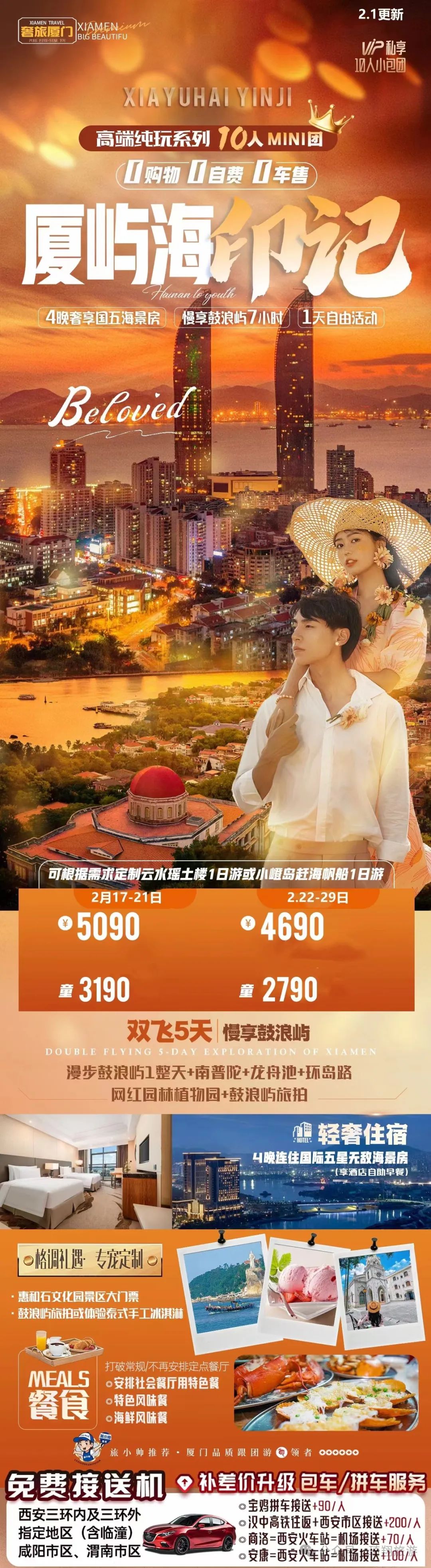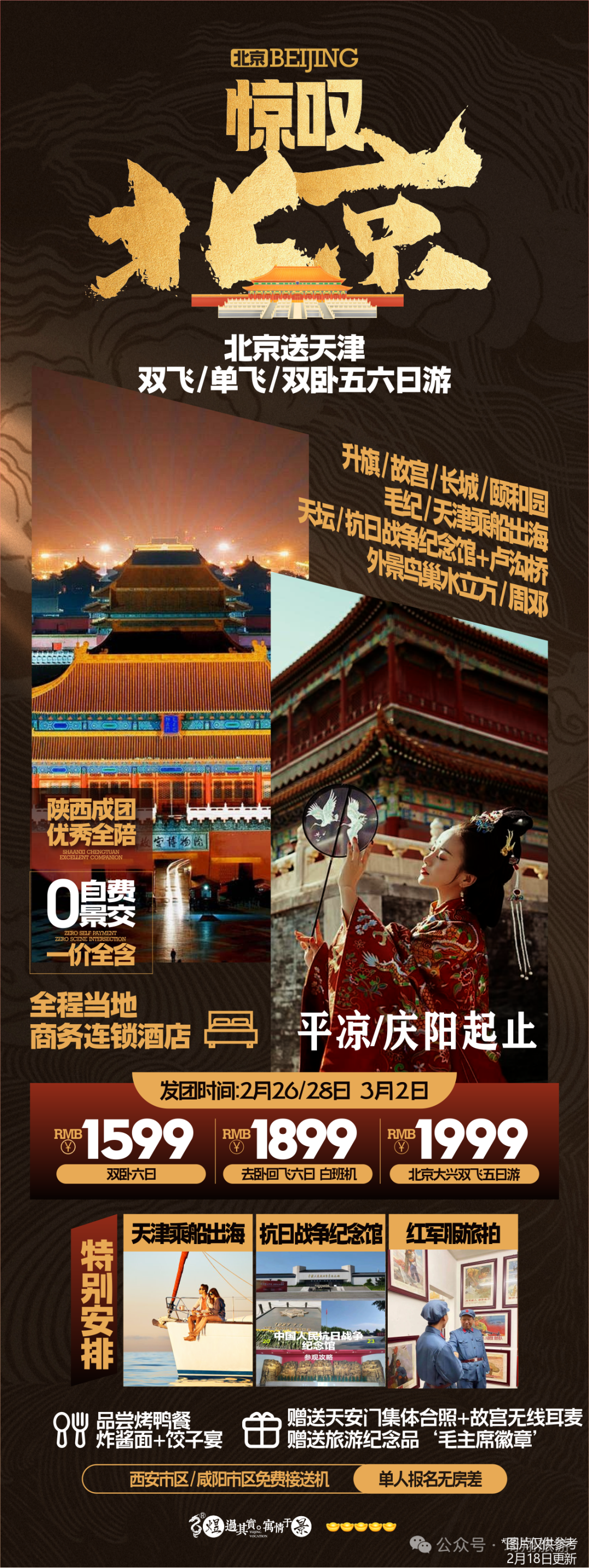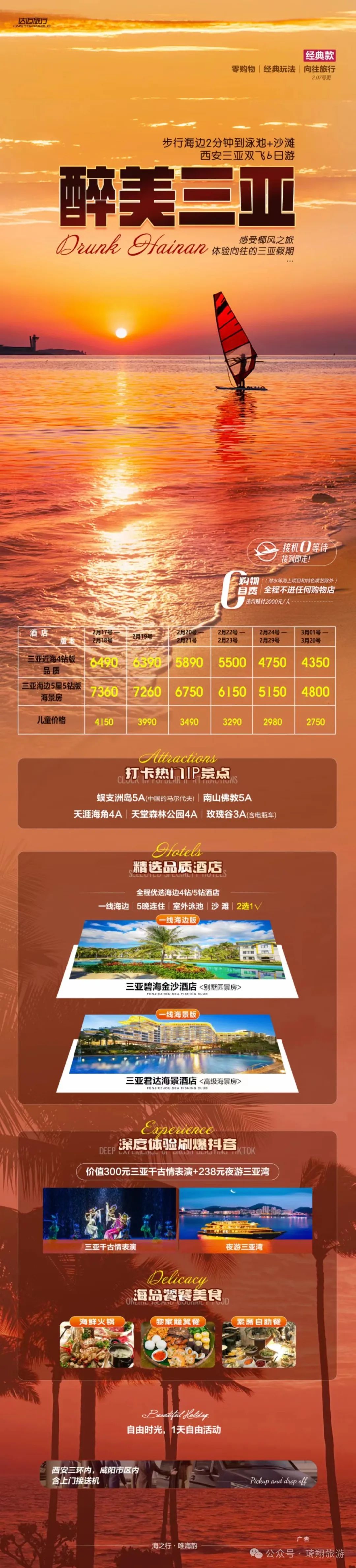 您现在的位置是:首页 > 国内旅游目的推荐 > 正文 国内旅游目的推荐 琦翔旅游•泾州旅行社2024年2月长线线路第二期已更…… admin2024年02月19日 18:28:30国内旅游目的推荐110 点击上方蓝字,关注我们哦在旅途中 遇见每一个可爱的你▼ 琦翔旅游|带你看世界【头号玩家】三亚双飞6日游【臻美南国】北海双飞6日游【醉美三亚】三亚往返双飞6日游【遇厦门】双飞5日游【鼓浪屿印记】厦门双飞5日游【恋上鼓浪屿】厦门双飞5日游【厦峪海印记】厦门双飞5日游【涠洲岛自由行】双飞6日游【云上花开】昆大丽双飞一动6日游【理想之城】昆大丽双飞一动6日游【版纳理想邦】双飞5日游【尊享北京】双高5日游【活力京城】单高单卧5日游【惊叹北京】双卧6日游【乐享迪士尼】双飞5日游【浔梦江南】品质双飞6日游【“四川”全景游】双动7日游【理想安逸耍荣成】亲子双动5日游【安逸蜀都】亲子双动4日游【漫步成都】双动4日游【天府传奇】双动5日游【天造武隆】双动4日游【心动的九寨】双动5日游【十里画廊】双飞5日游【逃之夭夭】双卧9日游【多吉西藏】双卧10日游文章部分内容来源于网络如有侵权,或者雷同,请联系删除。END线路会随时更新,详情请关注琦翔旅游微信公众号关注我 莓道理遇见小莓好悸动少女心 转载请说明来源于"旅荐网",部分内容转载自网络,如有侵权请联系qlwl@foxmail.com删除 本文地址:https://www.15386.cn/post/11106.html 上一篇 【蓝之春旅行社】多个岗位招聘中,欢迎应聘! 下一篇 游玩推荐,徽州幸福之旅——家庭出行 相关文章 反向旅行指南:广州出发1.5h,这几个小众秘境清明人少景美 旅游攻略|洛阳旅游年票能否在牡丹文化节期间使用?答疑来了! 洮河如意湾景区2026清明假期活动指南|民俗踏青+亲子露营,解锁春日新玩法 超详细西安地铁直达旅游全攻略 5-8月去甘南旅游攻略☞听J人的准没错 4-5月川西6天5晚旅游攻略 #北京旅行攻略 ,五十年了,五十后的我们走 北京之旅 #北京旅游攻略 西藏旅游七天六晚超详细旅行攻略,行程+费用+路线介绍 舟山春季旅游完全指南(2026版) 发表评论 取消回复 评论列表 这篇文章还没有收到评论,赶紧来抢沙发吧~