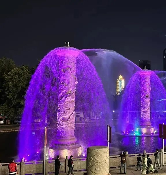 活动内容:当夜幕降临,统一广场化身梦幻舞台!音乐喷泉运用龙柱喷泉、水舞秀等表演形式,融合声光电技术,在悠扬的旋律中,水柱随节奏起伏,光影与水花交相辉映,为观众带来科技与文化相结合的沉浸式观赏体验,让每一次驻足都成为难忘的视觉盛宴。