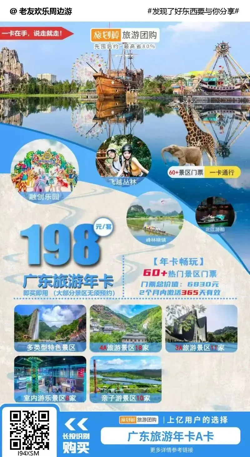 【广东旅游年卡A卡】旅游省钱利器,仅¥198抢旅游卡A卡!一卡即可畅玩60+热门景区,千万不要错过!