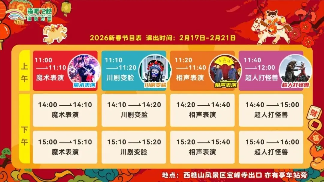 景区推出马年专属福利,1月10日至2月16日,属马游客及姓名含“马”字者凭身份证可免票入园。同时上线春节早鸟票,家庭票88元、双人票69.9元、单人票39.9元,使用至2月28日。此外,2月17日至23日景区广佛街招募文创市集摊主,非遗文创、手工艺品等非食品类摊主可免费入驻。