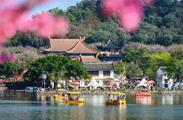 西樵山上的桃花、茶花现相继开放。春节假期将迎来观赏最佳时期,山上桃花园200余亩的5000多株桃花和茶花园各色茶花争艳,春花烂漫尽显岭南春意。