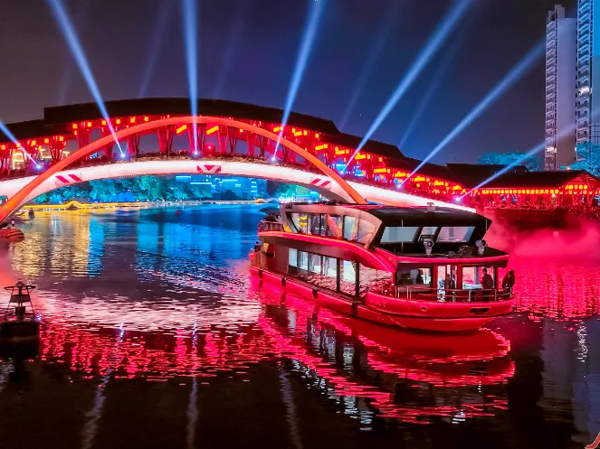 2月17日至22日(正月初一至初六),国艺影视城推出新春主题活动,打造沉浸式电影感新春体验。景区每日有古技灵韵台、水舞倾城、灵韵巡游等十余场特色演出,分布在皇宫、广佛街、百乐门等多个点位,7米高喷泉的水舞倾城表演尤为吸睛。游客可在影视场景打卡,与财神等神仙NPC互动合影,参与投壶、滚铁圈等游戏赢银票兑换礼品,还能完成寻宝打卡挑战解锁福利。